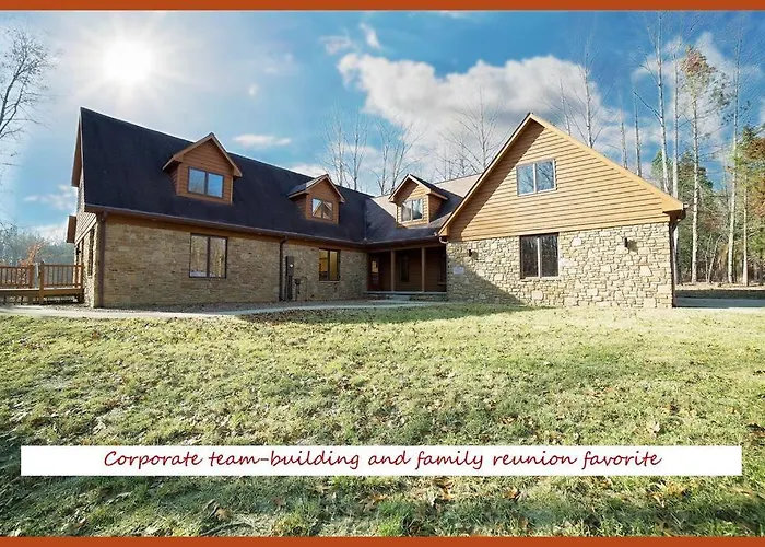 **Luxurious Estate By Brown County 40 Private Acres** bietet eine exquisite Auszeit inmitten der Natur, umgeben von 40 Hektar privater Landschaft. Diese Oase der Ruhe lädt die Gäste ein, dem Alltagsstress zu entfliehen und die Seele baumeln zu lassen. Hier wird Luxus und Natur harmonisch vereint, um ein unvergessliches Erlebnis zu garantieren.